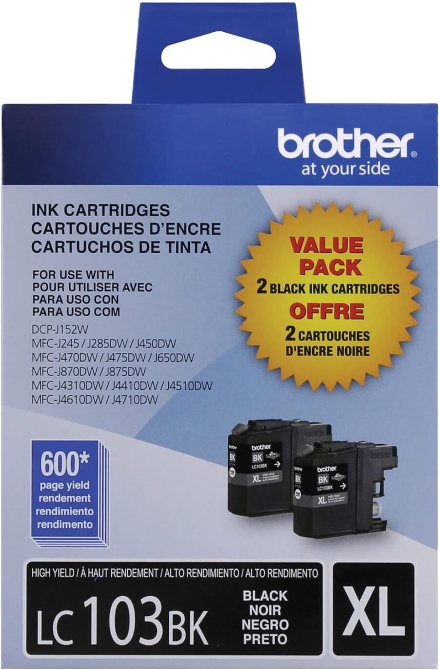 Brother LC103 High-Yield Black Ink Cartridges, Pack Of 2, LC1032PKS
