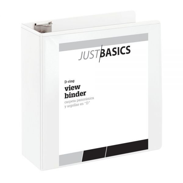 Just Basics Basic View 3-Ring Binder, 4″ D-Rings, White
