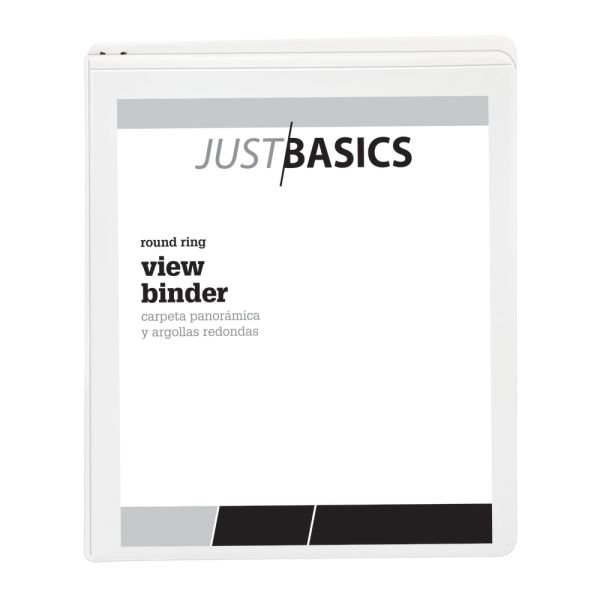 Just Basics Basic View 3-Ring Binder, 1/2″ Round Rings, White