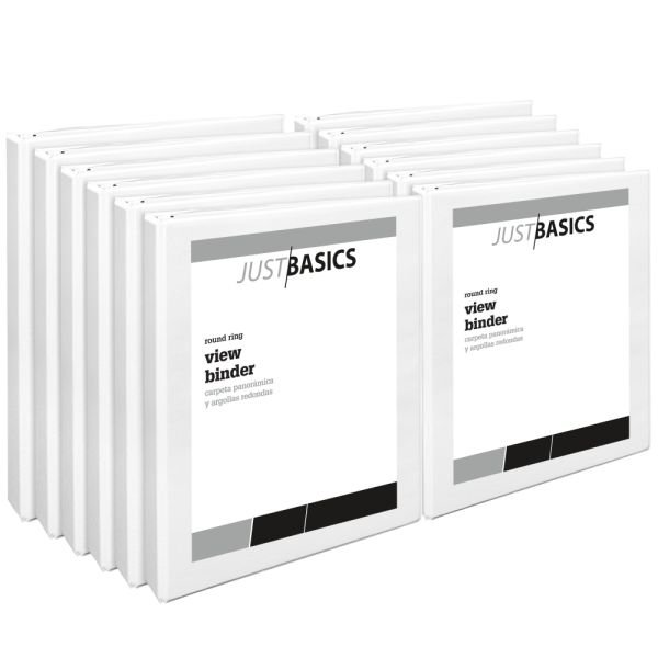 Just Basics View 3-Ring Binder, 1″ Round Rings, White, Pack Of 12