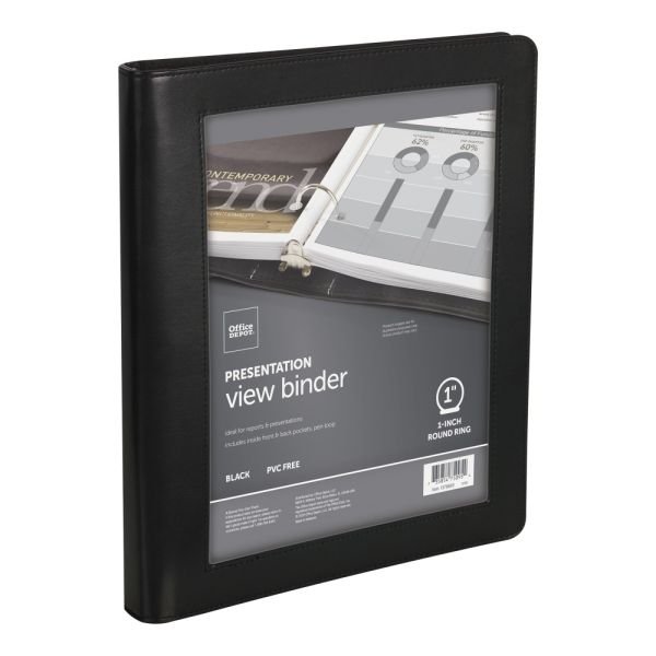 Premium Leatherette Presentation View 3-Ring Binder, 1″ Round Rings, Black