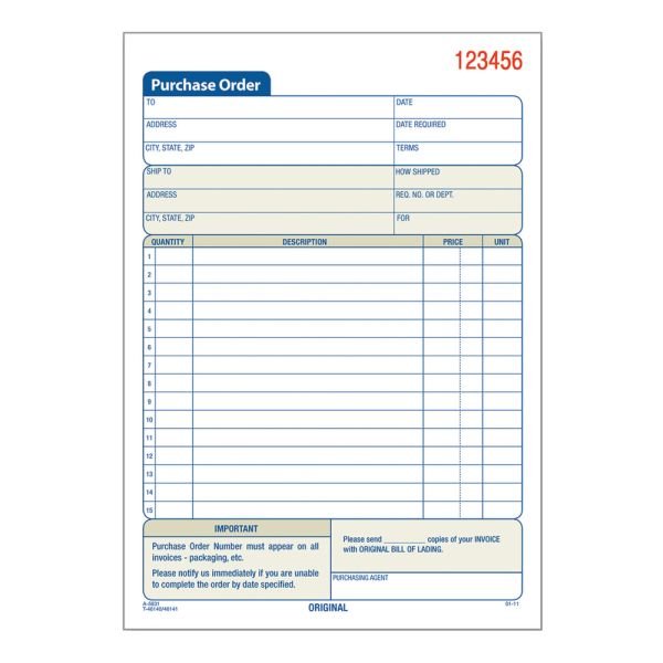 Adams Carbonless Purchase Order Book, 5 9/16″ x 8 7/16″, 2-Part, 50 Set Pad