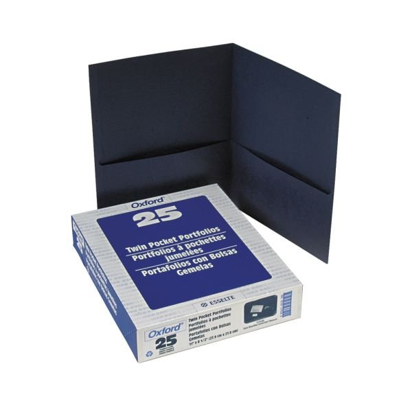 Oxford Twin-Pocket Leatherette Folders, 8-1/2 x 11″, 100-Sheet Capacity, Dark Blue, Box of 25