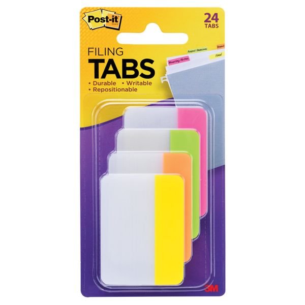 Post-it Notes Durable Filing Tabs, 2″ x 1-1/2″, Assorted Colors, 6 Flags Per Pad, Pack Of 4 Pads