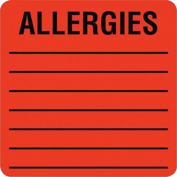 Tabbies Allergy Labels, TAB40560, 2″ x 2″ Square, Flourescent Red, Roll of 500