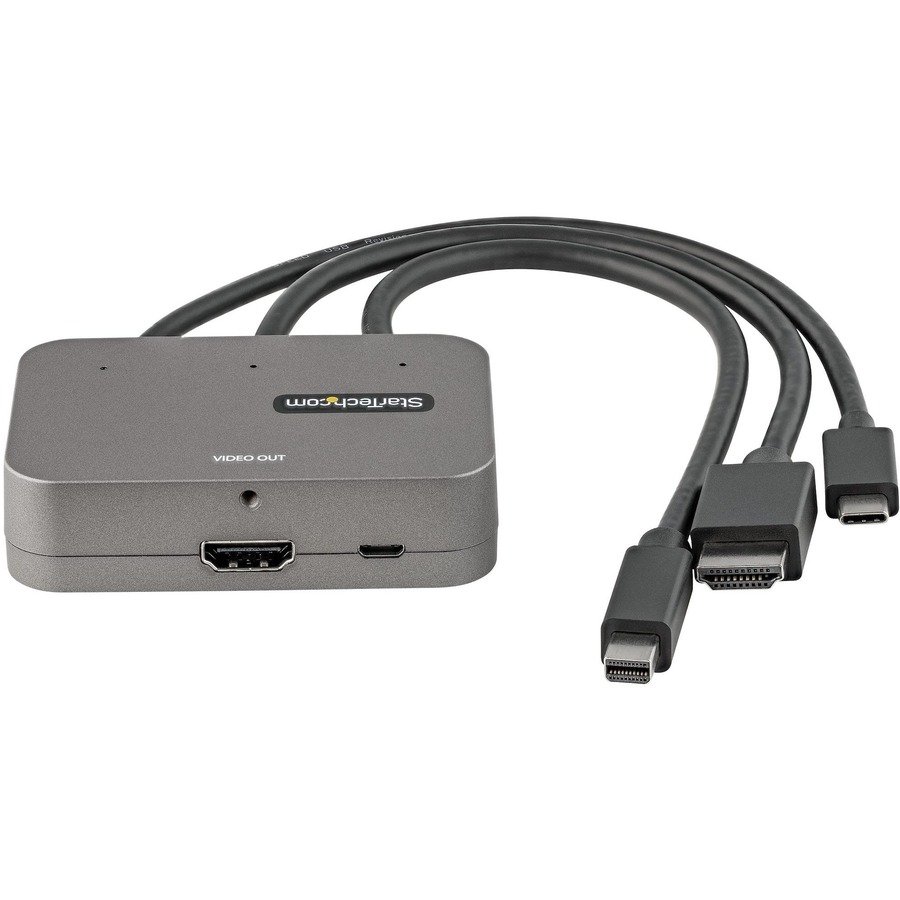 StarTech.com CDPHDMDP2HD video cable adapter 10.6″ (0.27 m) HDMI + USB HDMI + Mini DisplayPort + USB Type-C Black, Silver