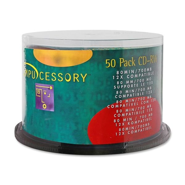 Compucessory CD Rewritable Media – CD-RW – 12x – 700 MB – 50 Pack – 120mm – 1.33 Hour Maximum Recording Time