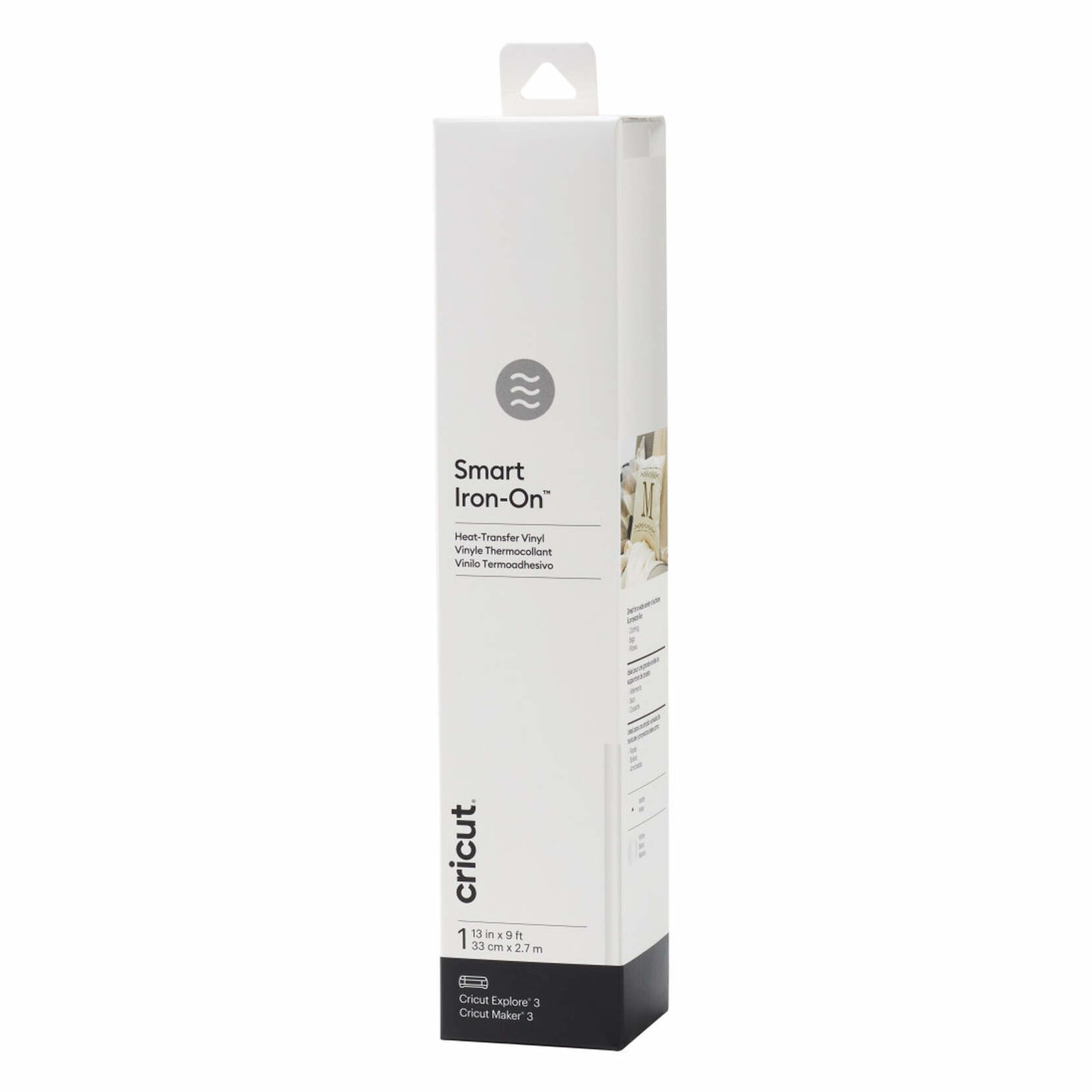 Marketing Information With Smart Iron-On? in White, you’ll be wearing your creativity on your sleeve, your pant leg, or your pocket every single day. This nifty material works without a cutting mat – just load and go. With 9 ft of material, adding a personalized touch to jerseys for the whole team in one cutting project has never been easier. Smart Iron-On outlasts 50+ washes* and works on a wide variety of materials (even wood!). For use with Cricut Explore® 3 and Cricut Maker® 3. For effortless application, use Cricut EasyPress®. Or apply with household iron.