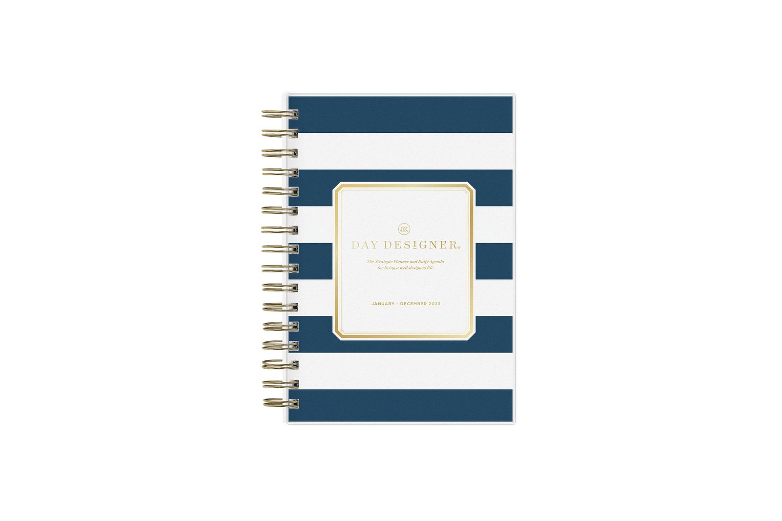Day Designer Navy Stripe Daily/Monthly Planner, Horizontal Stripe Artwork, 8 x 5, Navy/White Cover, 12-Month (Jan-Dec): 2025