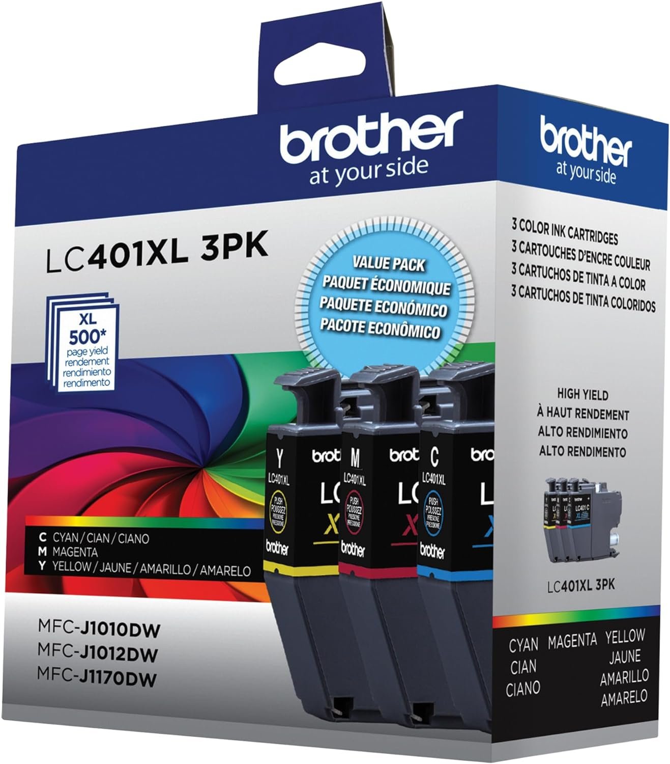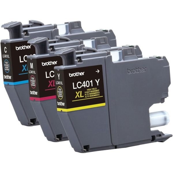 - Brother Genuine LC401XL3PK High Yield 3-Pack Color Ink Cartridges includes 1-cartridge each of Cyan, Magenta and Yellow ink.