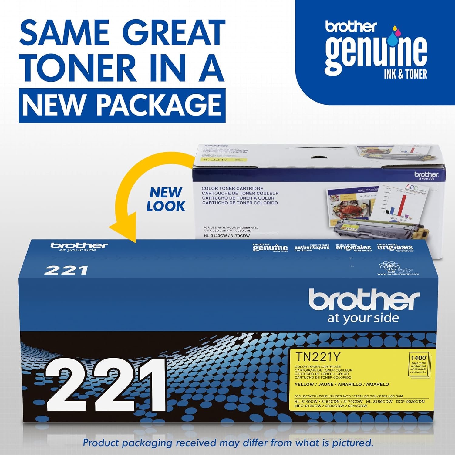 Brother TN-221 Yellow Toner Cartridge, TN-221Y – Bring images to life with this Brother TN-221Y toner cartridge. When paired with your compatible printer, each color Brother toner cartridge delivers the vibrant results needed to help your project stand out.