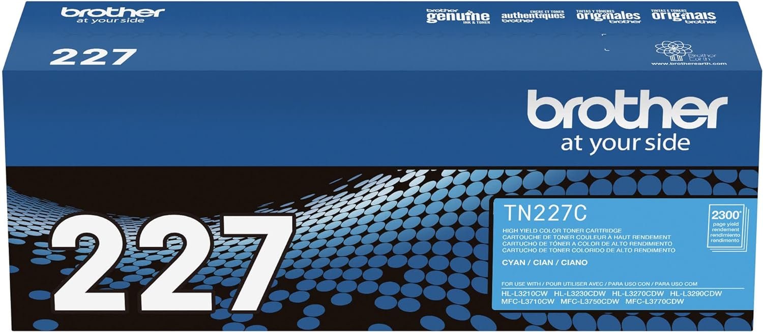 - Brother Genuine TN-227C High Yield Cyan Toner Cartridge.
