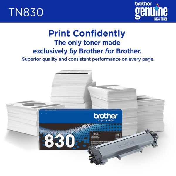 Brother TN830 Black Standard Yield Toner Cartridge – Print Confidently with Brother Genuine TN830 Standard Yield Black Toner Cartridges, expertly engineered for consistent, premium print quality in Brother Monochrome (Black & White) Laser Printers.