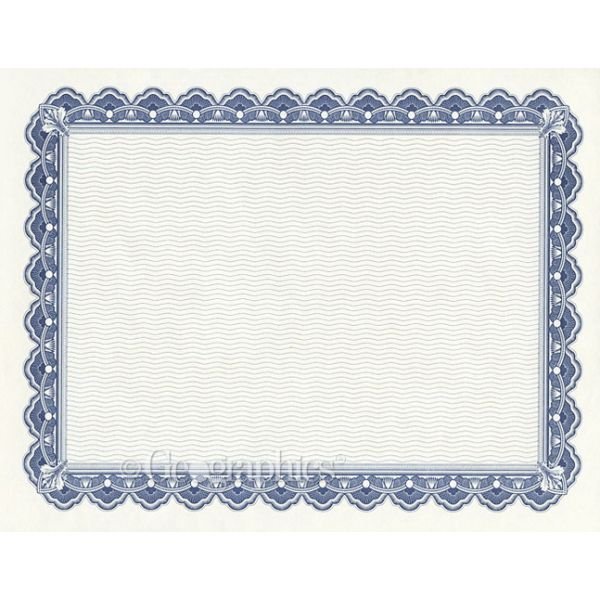 Geographics Archival Quality Parchment Paper Certificates, 11 x 8.5, Horizontal Orientation, Blue with Blue Royalty Border, 50/Pack – Acid-free, 24-lb. parchment paper certificates have border design. Can be used with copiers, laser and inkjet printers. Each certificate is made from 50% recycled, 30% post-consumer material and can be decorated with self-adhesive gold foil seals (sold separately). For use with Geographics document covers.