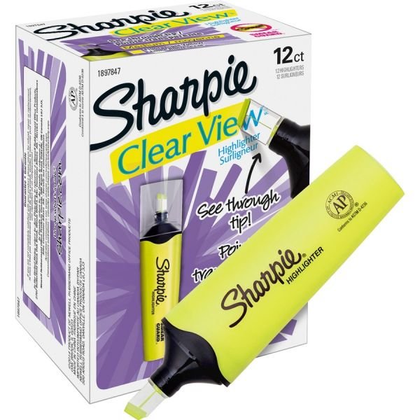 Sharpie Clearview Tank-Style Highlighter, Fluorescent Yellow Ink, Chisel Tip, Yellow/Black/Clear Barrel, Dozen – Features a unique, see-through tip that eliminates blind spots. Smear Guard ink technology resists smearing of many pen and marker inks (let ink dry before highlighting). Innovative, blade-style tip delivers precise highlighting with the ability to select different line widths.