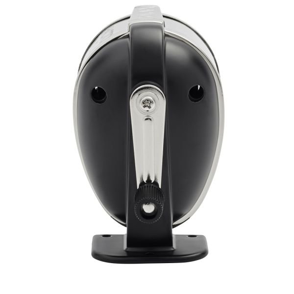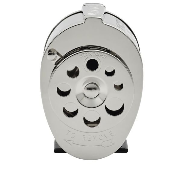 - Die-cast metal base with steel shavings receptacle.