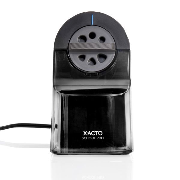 X-ACTO School Pro Electric Pencil Sharpener, Black – The X-ACTO School Pro Pencil Sharpener can sharpen a wood case pencils to a precise tip. The fly-away cutter stops sharpening when a pencil has reached its ideal sharpness. It’s also compatible with colored pencils. Stay sharp with the X-ACTO electric pencil sharpener brand!