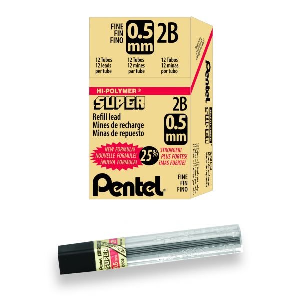 Pentel Super Hi-Polymer Leads, 0.5 mm, 2B, Tube Of 12 Leads – Pentel Super Hi-Polymer Lead is ideal for all general-writing applications, such as notes and letters.