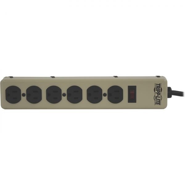 Tripp Lite by Eaton Industrial Power Strip Metal, 6-Outlet, 6 ft. (1.8 m) Cord – Tripp Lite’s 6NX6 Power Strip offers a convenient method of power distribution in workbench, wallmount or floor mount applications. Includes 6 NEMA 5-15R output receptacles with 1.520-in. center-to-center spacing, 6-ft. AC line cord and keyhole mounting tabs for installation in a wide variety of applications. Corded, multi-outlet strip reduces cabling clutter and enables the connection of multiple electrical devices to a single AC wall socket. Unfiltered electrical pass-through makes the 6NX6 ideal for distributing alternate waveform UPS or generator power. Features rugged metal housing, lighted power switch with integrated 15A resettable circuit breaker and attractive beige housing with black receptacles. Lifetime warranty.PLUG/OUTLETS – Input: NEMA 5-15P/Output: 6 NEMA 5-15RELECTRICAL – 120VAC, 50/60Hz, 15A (Requires standard NEMA 5-15R wall receptacle)FORMAT – Corded power distribution strip
