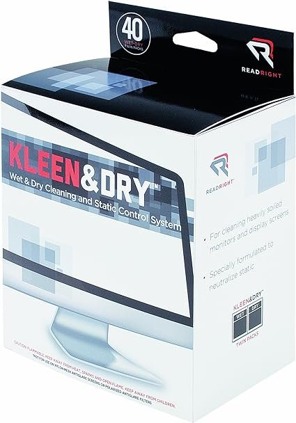 Advantus Kleen And Dry Screen Cleaner Wipes, Box Of 40 – The ultimate in screen cleaning power, this is the ideal choice for large or heavily soiled computer and display screens, TVs and much more. The system contains two parts: a heavily saturated wet wipe to neutralize static and effectively remove dust, dirt and oil; and a strong, dry, absorbent cloth for drying and polishing the screen to streak-free optical clarity. Not for use on nylon mesh/polarized antiglare screens.