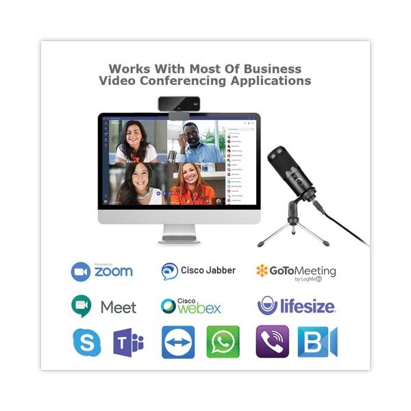Adesso Xtream M4 Cardioid Condenser Recording Microphone, Black – This Cardioid Condenser Microphone is engineered for quality recordings for podcasts, communications and music. The plug-and-play USB design installs quickly and easily to upgrade your home or office microphone to the next level. Adjustable volume control on the microphone combined with a tripod stand lets you position optimally. Tested to work with the leading conference software on the market today including Zoom, Microsoft Teams, Cisco Webex, GoToMeeting and Google Meet.