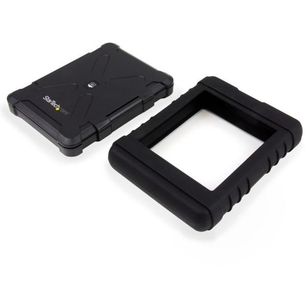 StarTech.com 2.5″ USB 3.0 Hard Drive Enclosure — Rugged — Supports UASP — Tool-Less — IP54 — SSD USB External HDD Enclsoure – This rugged drive enclosure redefines data protection for on-the-go professionals. The military-grade construction protects your sensitive data from harsh field conditions. It makes sure you’re equipped for unexpected challenges with a ruggedized water, dust, vibration and shock resistant enclosure.